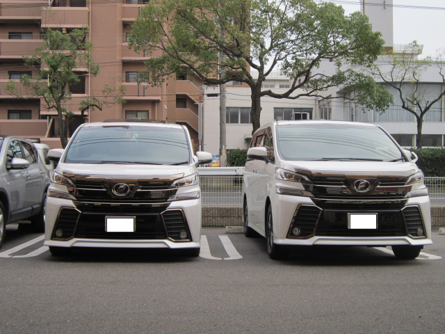 本日、たまたま車高調でローダウンされたお客様とノーマル車高のお客様のヴェルファイアが、来店されました!