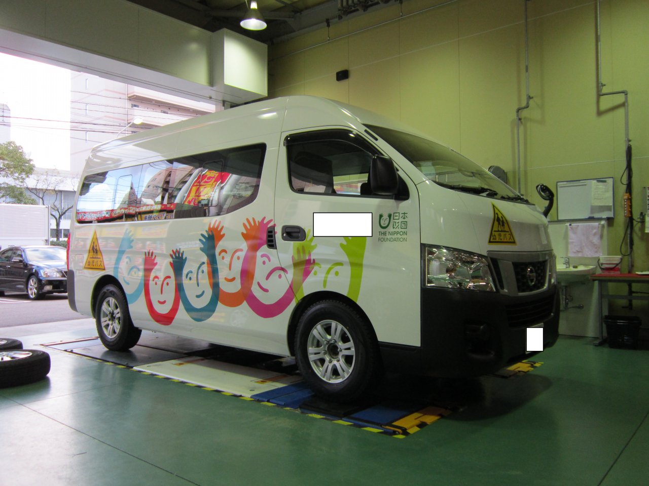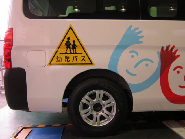 本日、幼児バスへスタッドレスタイヤを装着しました。