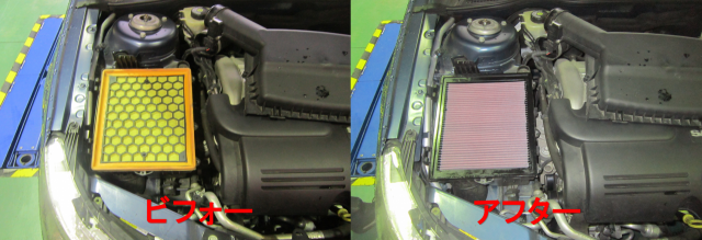 純正のエアフィルターから、K&N製エアフィルターに交換しました。