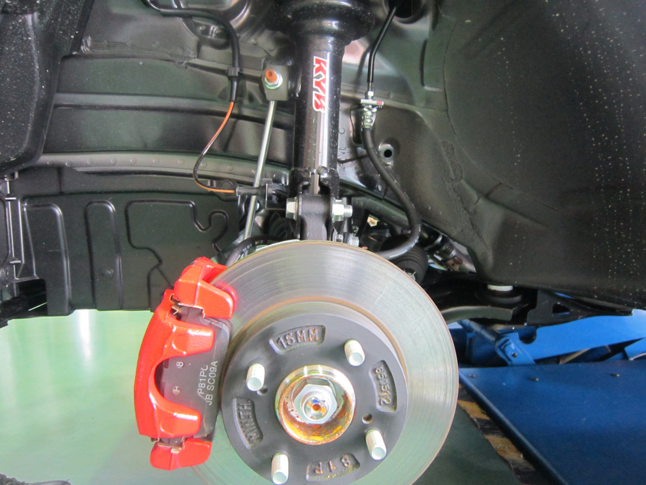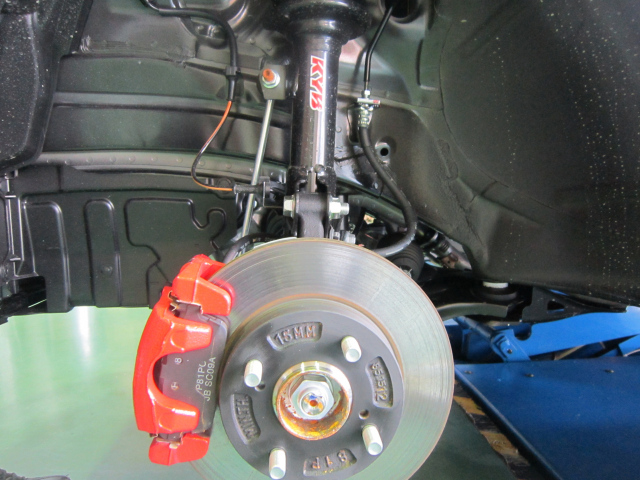 フロントです。ショックアブソーバーにKYBとステッカーが格好良く貼っています。