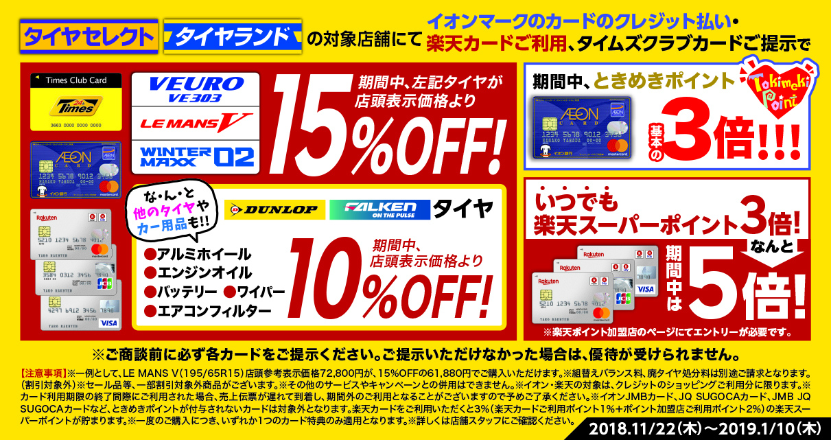 上記のカードのご提示で、ダンロップ・ファルケンブランドが店頭表示から10%OFF!