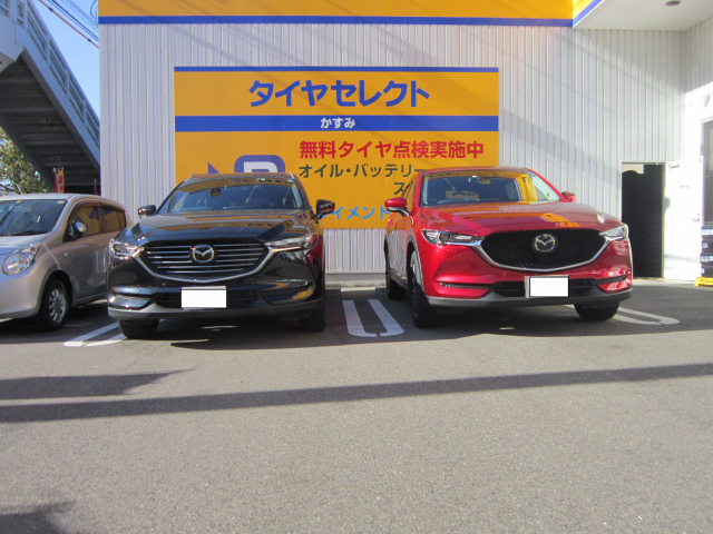 本日は、マツダ・CX-5とCX-8のスタッドレスタイヤ交換をしました。