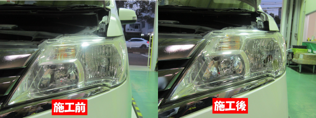本日は、日産・セレナの左ヘッドライトだけが曇っていたので、磨きの作業をしました。