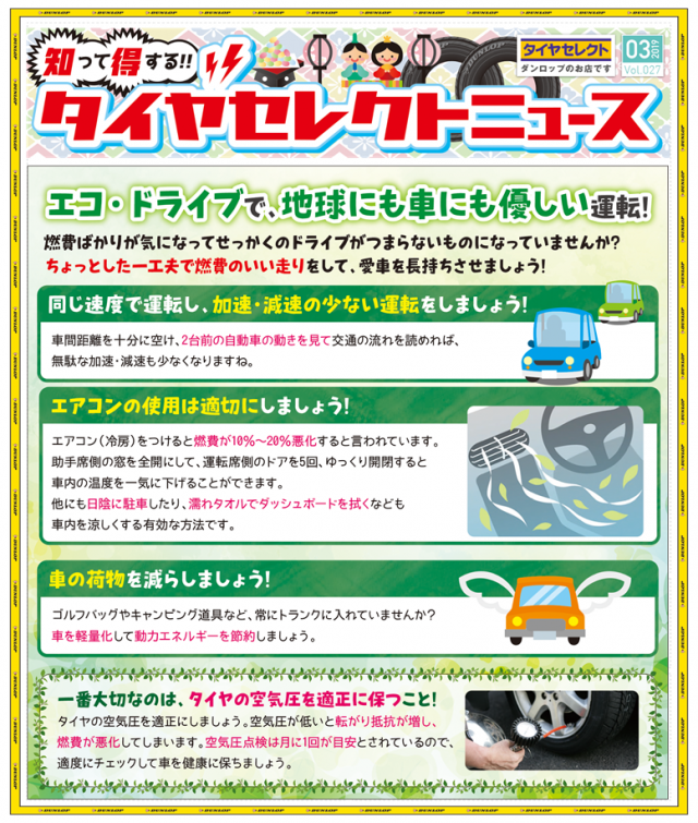 本日は、ダンロップ直営店が毎月発行している、知って得する!!タイヤセレクトニュースのご案内です!!