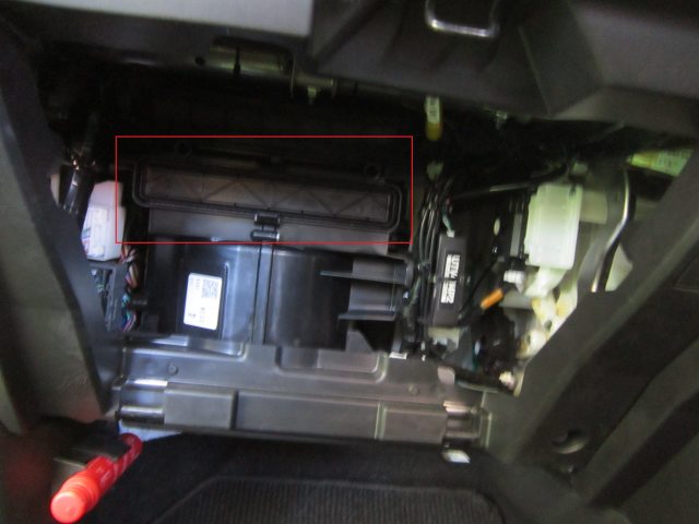 四角で囲んでいる場所に、エアコンフィルターがあります。