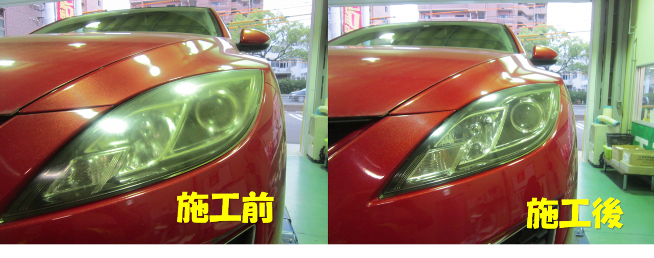 タイヤご購入のサービスとして、ヘッドライトを磨かせていただきました。