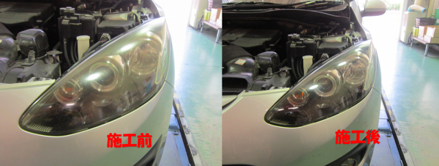 タイヤ交換時のサービス(繁忙期は除く)として、ヘッドライト磨きをしました。