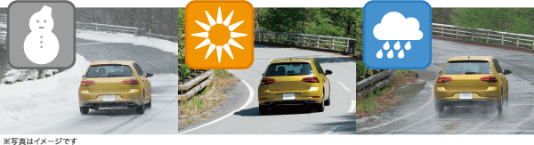雨の日の”ウエット路面”や急な天候変化による”雪上路面・シャーベット路面”など