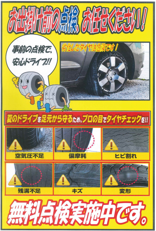 定期的にタイヤの点検をし、タイヤを長持ちさせましょう!!