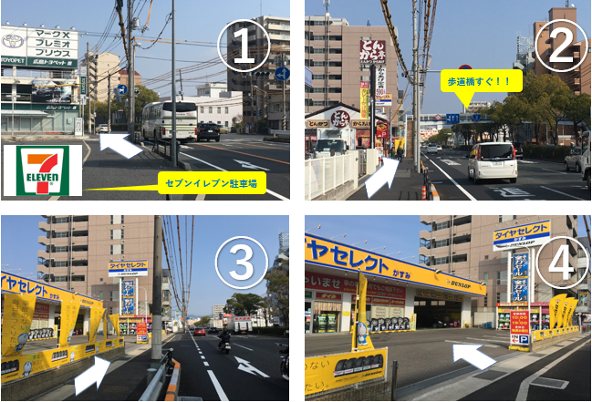 歩道橋に隠れて大事な大事なタイヤセレクトの看板が少し隠れています!!