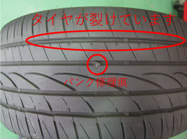 この様な危険なタイヤがありますので、皆さん是非、当店でタイヤチェックをしてみませんか!!