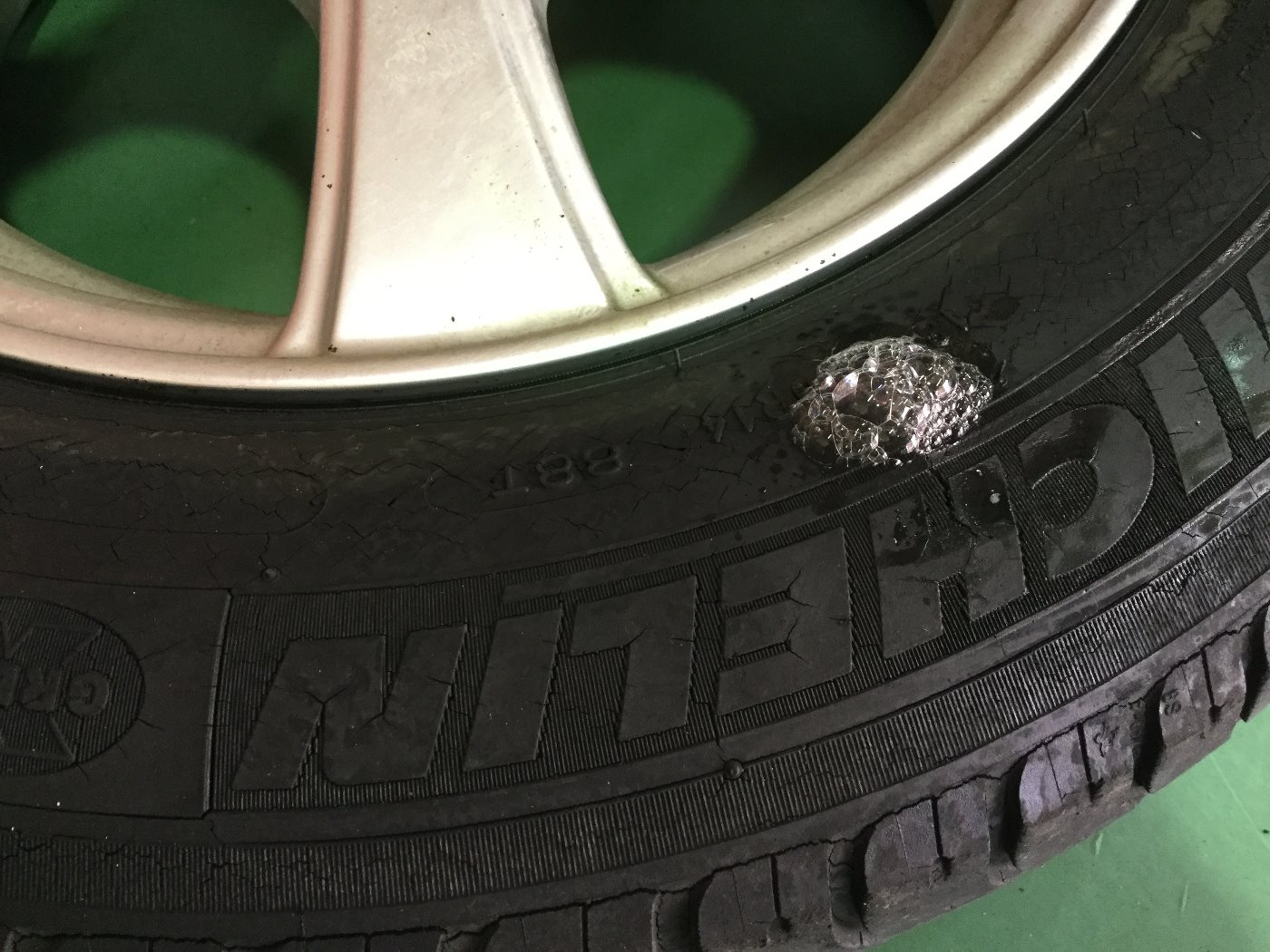 タイヤの溝が残っていても劣化がひどくなってきたらこのようにパンクする場合もあります。