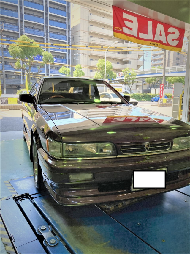 本日のお客様は、このドラマで「タカとユージ」が乗っていた「レパード」でタイヤ点検のため御来店いただきました。 お車を大切にされていて、定期的に点検でご来店いただいているお客様です。