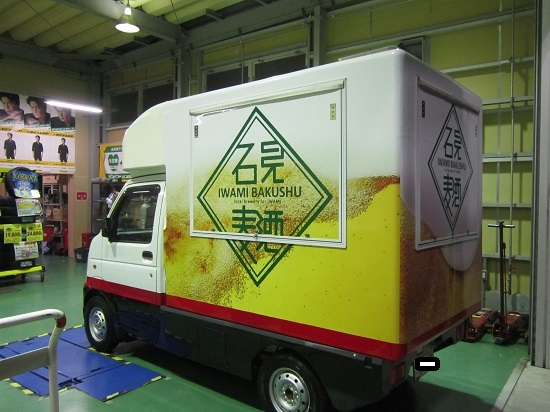 自動車屋さんのお仕事の見学? 移動販売車のラッピングです。 なーんとこんな感じ。 うーんなるほど・・・・