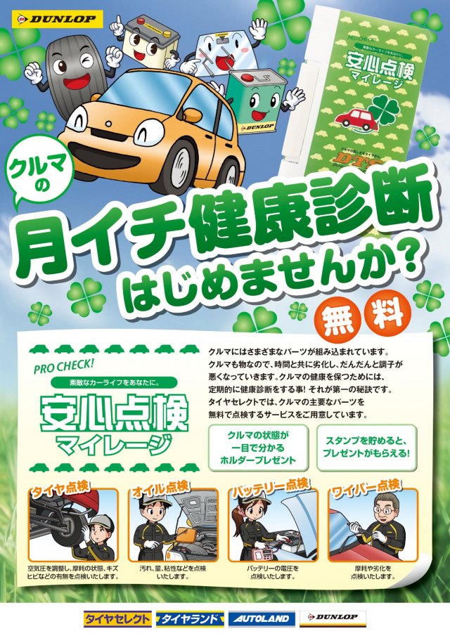 日頃より、タイヤセレクトかすみHPをご覧頂き誠にありがとうございます。 みなさん、おクルマの点検はしていますか? 人間と一緒で、車も健康診断をしましょう(*^_^*) タイヤセレクトかすみでは点検待ち時間無し!! ...