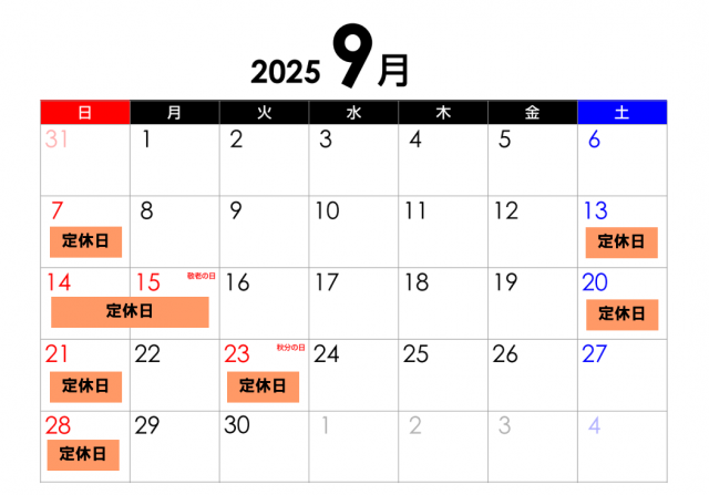 日頃より、タイヤランド尾道HPをご覧いただき、ありがとうございます。 9月の定休日のご案内をいたします。