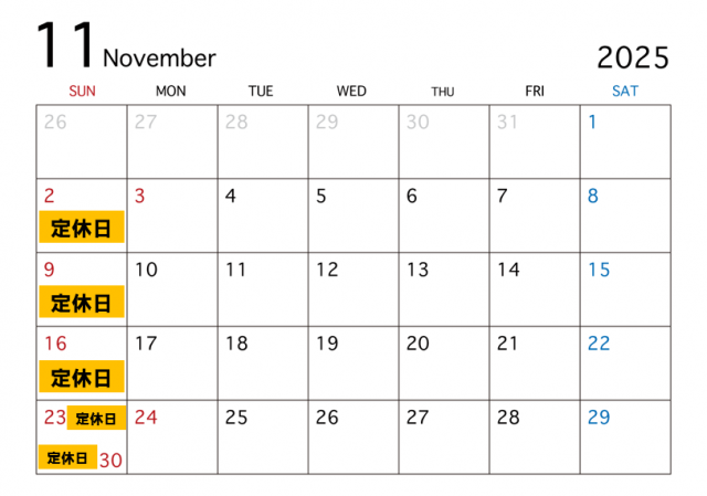 日頃より、タイヤランド尾道HPをご覧いただき、ありがとうございます。 11月の定休日のご案内をいたします。