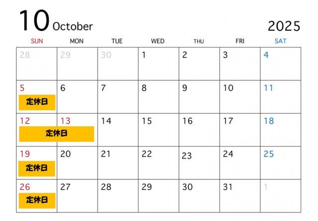 日頃より、タイヤランド尾道HPをご覧いただき、ありがとうございます。 10月の定休日のご案内をいたします。