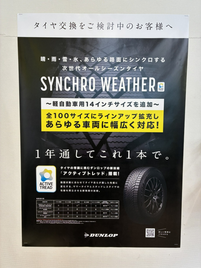 こんにちは、日に日に気温が下がってきておりますね・・・。 北海道の方は雪がすごいですね。 只今話題のオールシーズンタイヤ!ダンロップ・シンクロウェザー! お客様からのお問い合わせ、ご注文増えてます! お客様...
