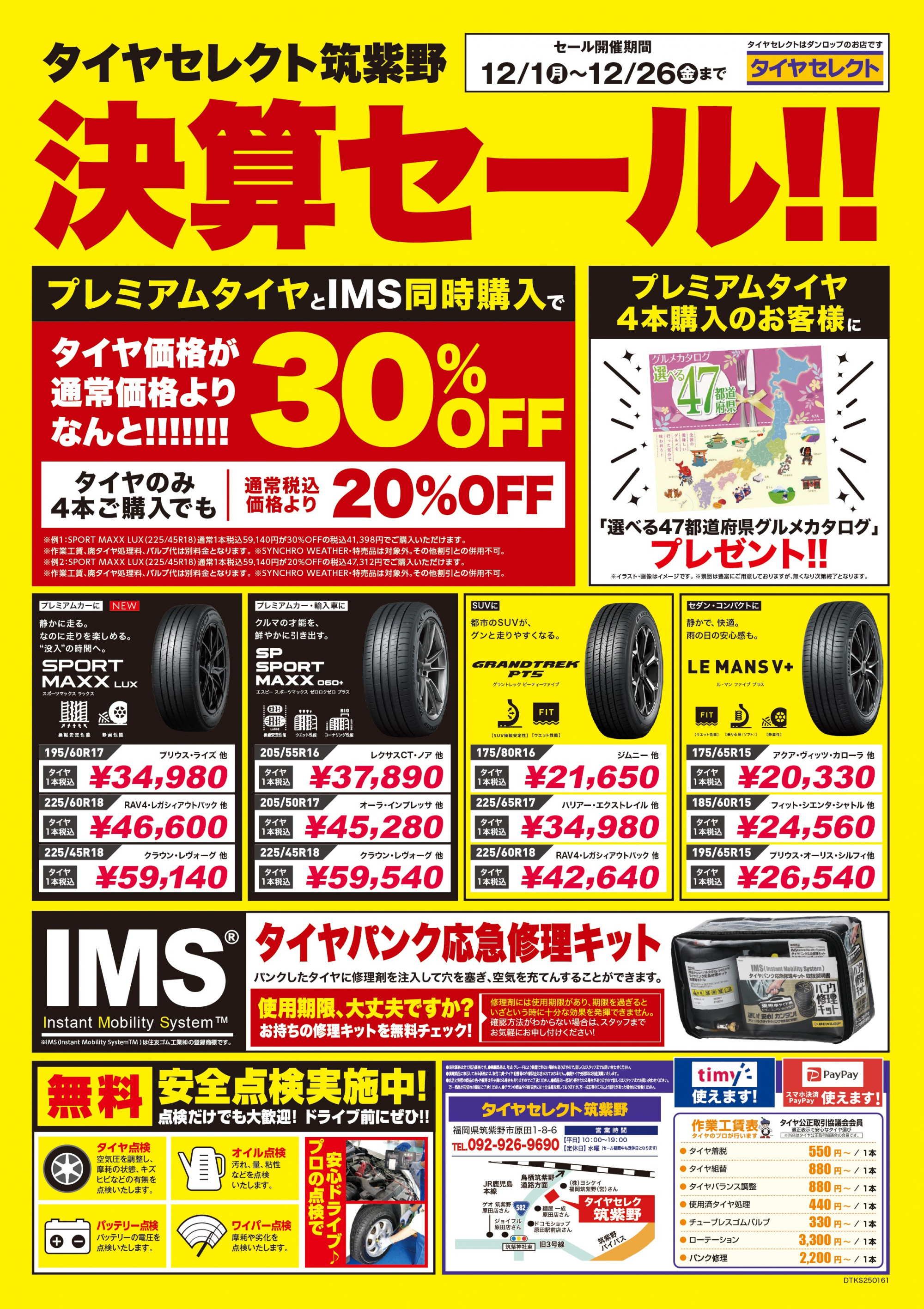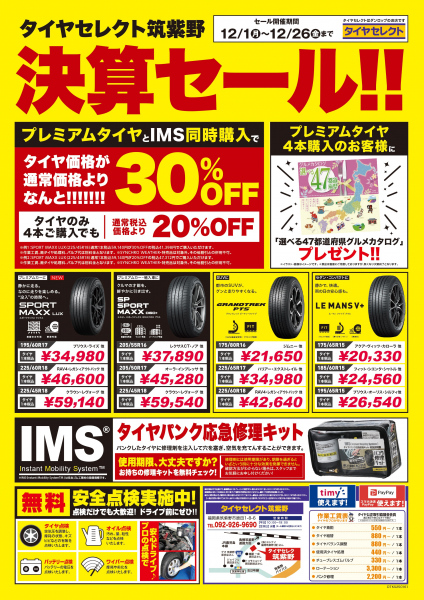 タイヤパンク応急修理キットIMSをセットでご購入の方、通常価格より30%OFF!!