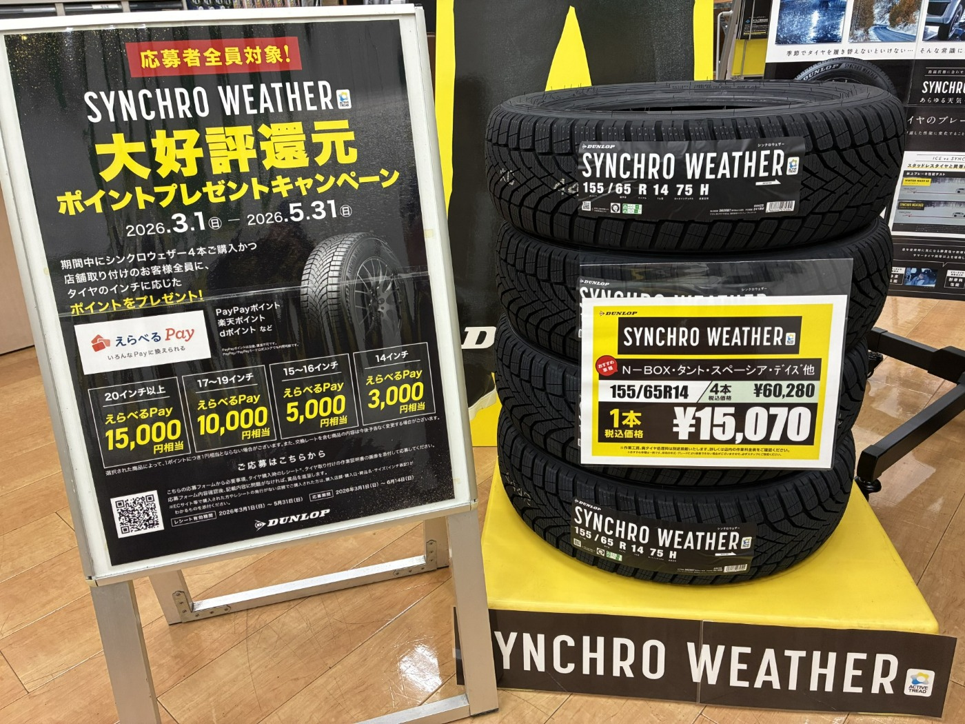 ダンロップの話題のタイヤ!SYNCHROWEATHERキャンペーン開催してます!