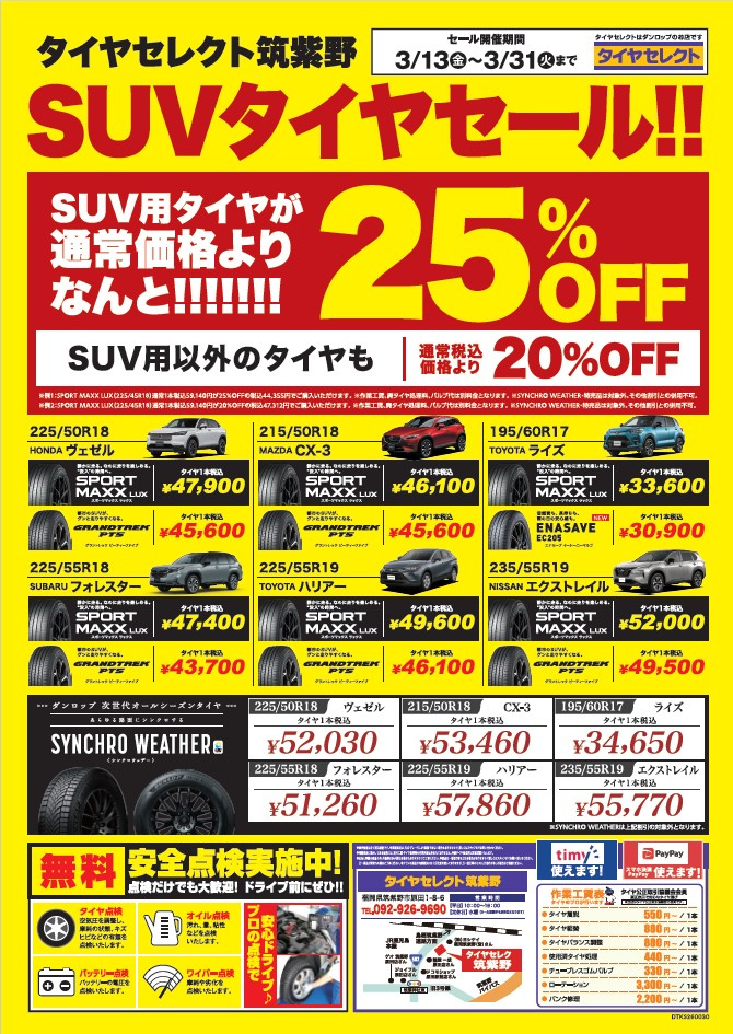 SUVタイヤ25%OFFセール!!