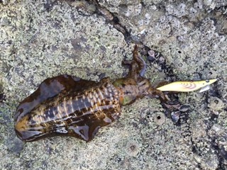 午前中は、平戸北部をまわり、生月でご飯を食べて、百選に選ばれたエメラルドグリーンの人津久海水浴場で泳ぎながらシュノーケルで魚を観察しているとコウイカを発見!!