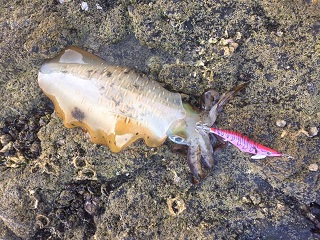 それから、新規開拓のため他の磯と漁港を4か所まわりましたが小潮で潮が動かずと水に濁りがあり釣り人、エギンガーは全く見ることもなく昼間は全く釣れませんした(>0<)