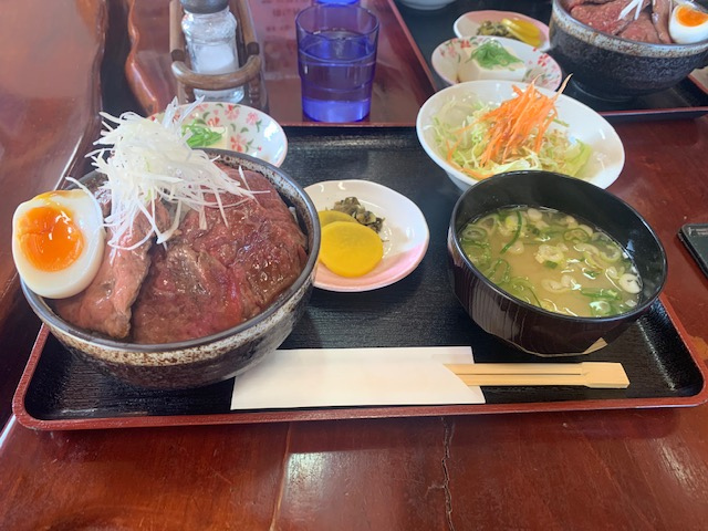 赤牛をふんだんに使ったどんぶりで半熟の卵がもうたまらんです、はい。