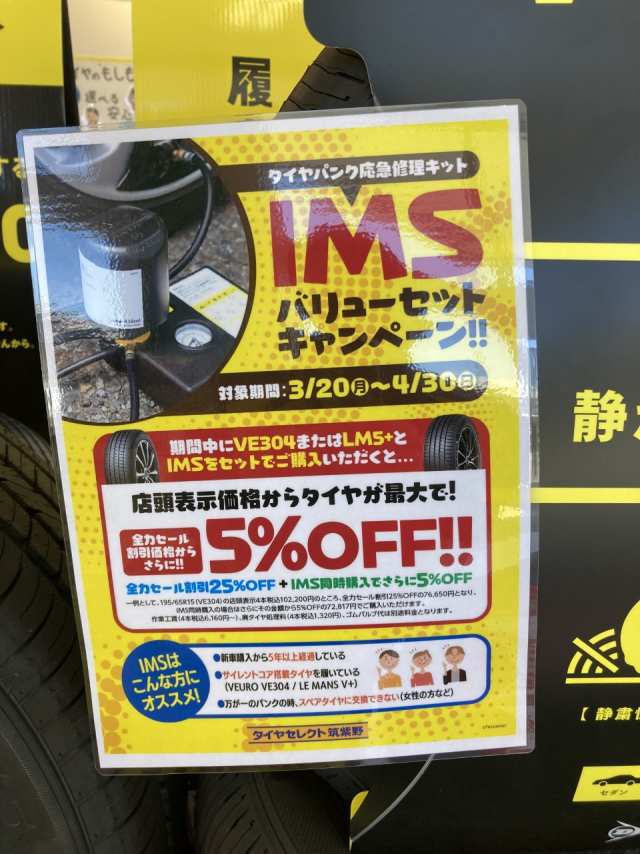 パンク応急修理キットIMSを一緒にご購入の方は、さらに最大5%OFFいたします!