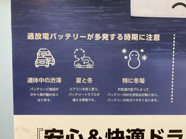 連休中の渋滞、エアコンの使用、バッテリーに負担が掛かりやすい時期です。