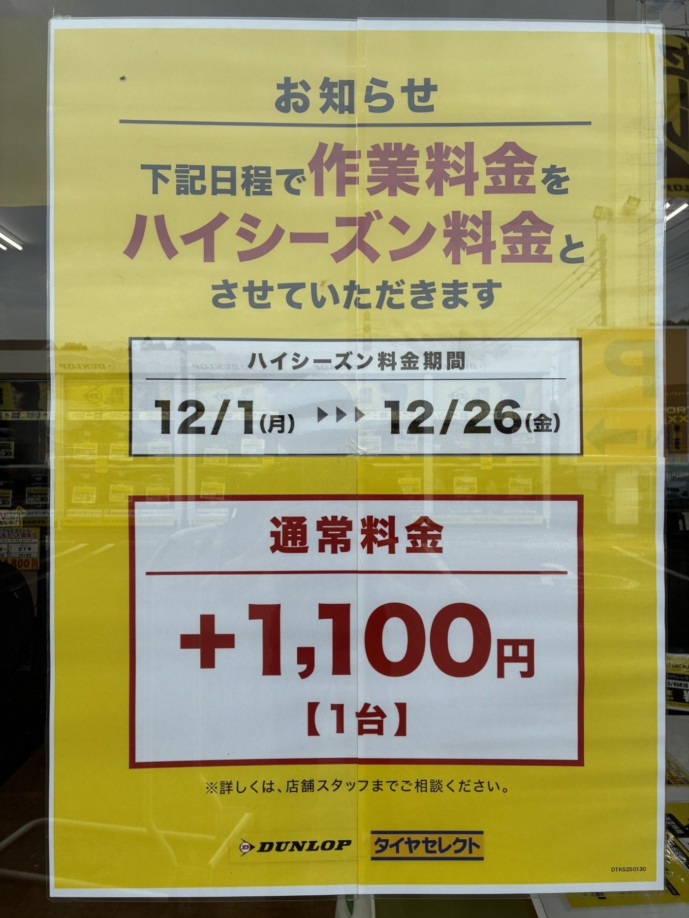繁忙期12月1日(月)~12月26日(金)の期間中、申し訳ございませんが下記の内容で作業工賃を変更させて頂きます。