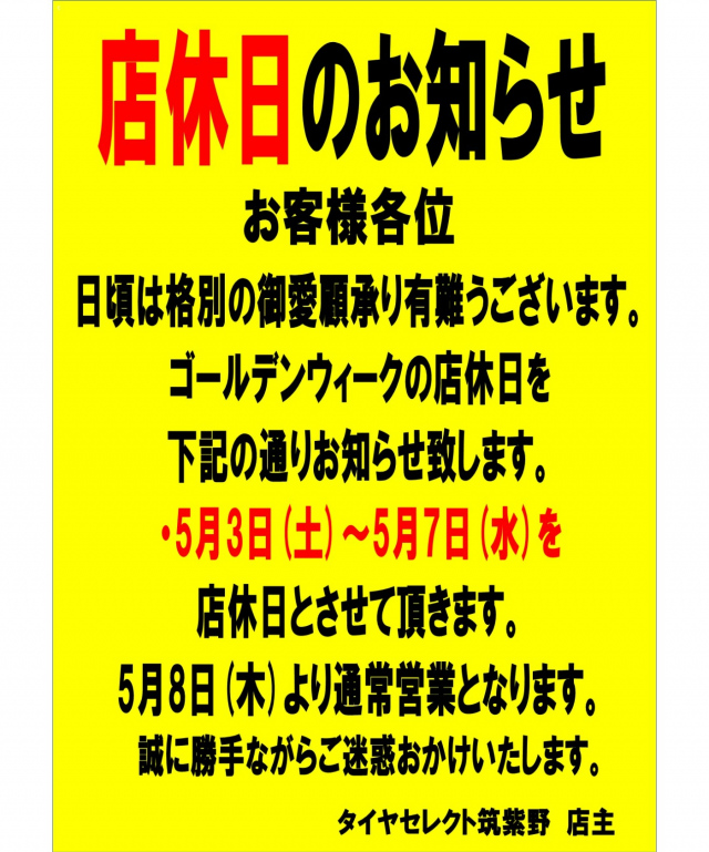 春のセール開催いたします!! 3月15日(土)から3月31日(月)期間中、チラシご持参・HPのチラシ画面ご提示でタイヤ4本セットご購入の方当店通常価より25%OFFになります(^^)/ ※シンクロウェザー・特価タイヤは除...