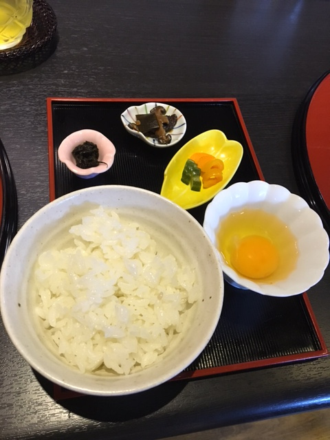 ご飯もほくほく、卵も新鮮で醤油がたまごかけごはん用にシソが入ってる特殊な醤油になっております。