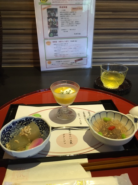 今回食べたのは1100円のランチセット。三種類の小鉢【日替わり)とご飯物【白ご飯、卵かけご飯、炊き込みご飯どれか)、本日のお薦め米麺【日替わり2種類ほどから)がセットになったお得感満載のセットです。そしてコース料理のように順番に持ってきてくれるのでなんかちょっとお高めのお店に来たような錯覚に陥ります。(笑)