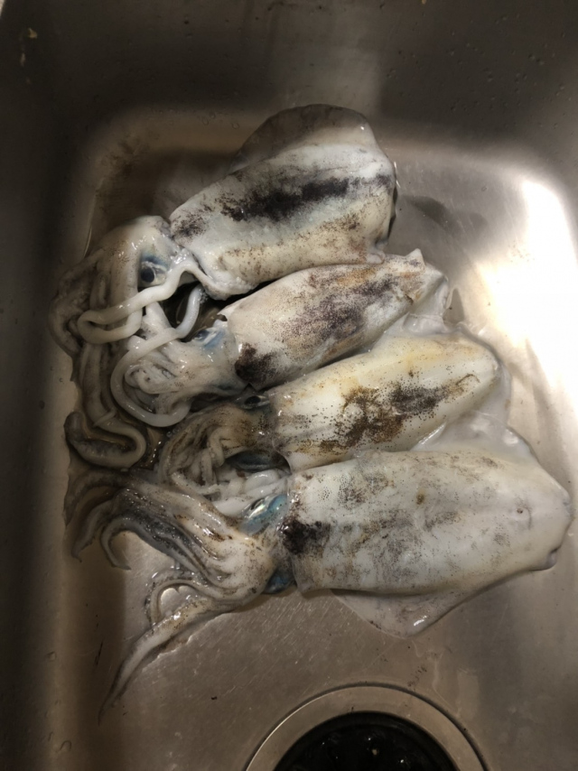 釣った後はさばいて美味しくいただきました。このイカ達は私のではなく、釣り師いおり君の写真です。