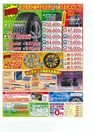 期間中タイヤやメンテナンス商品がお買い得になっています!