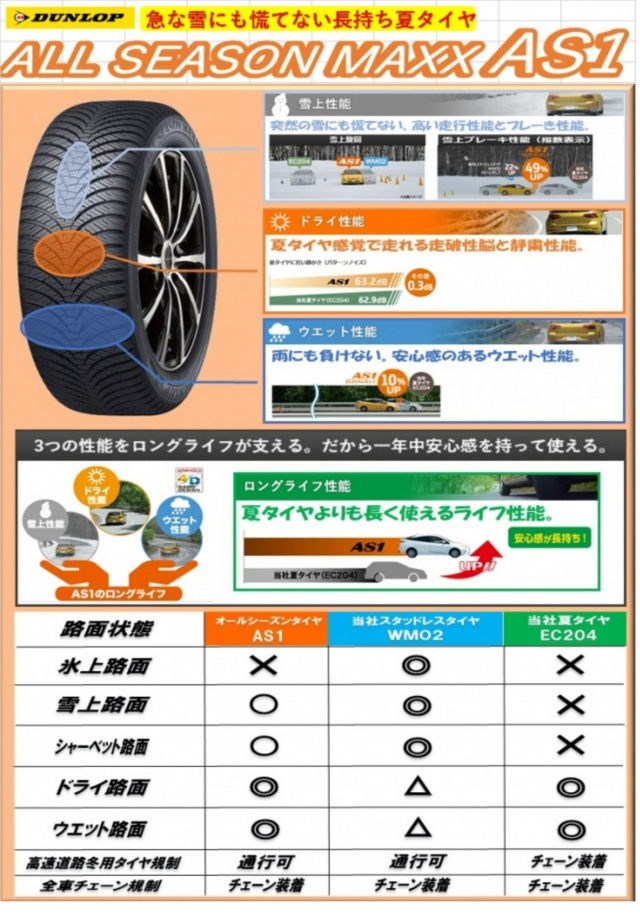 次にダンロップタイヤオールシーズンタイヤAS-1です