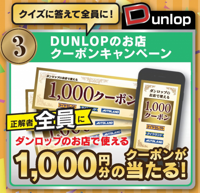 ③ Dunlop DUNLOPのお店クーポンキャンペーン!!