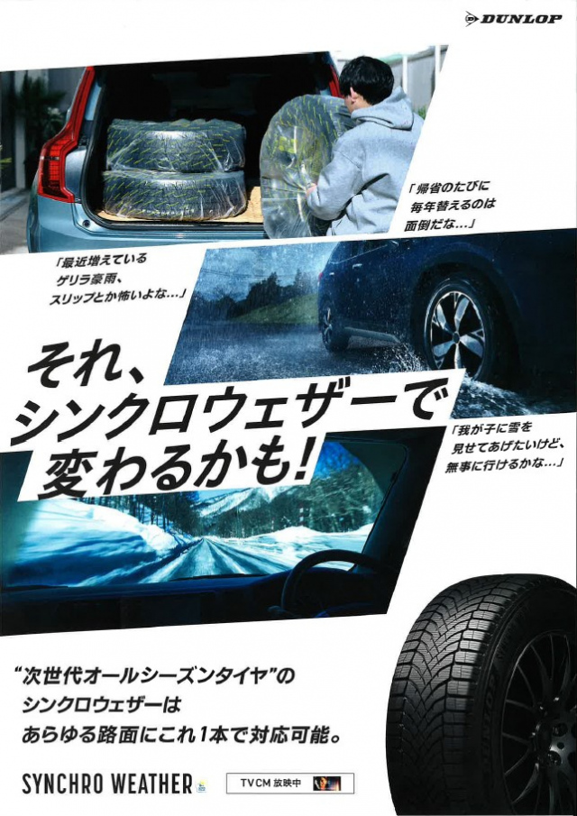 こんにちは、スタッフの小原です(´-ω-`) 今回のお知らせは年中装着できる次世代タイヤシンクロウェザーの紹介です(^_-)-☆ タイヤが自らあらゆる路面状況に適した性能に変化する新発明 【アクティブトレッド】搭載(*´з`...