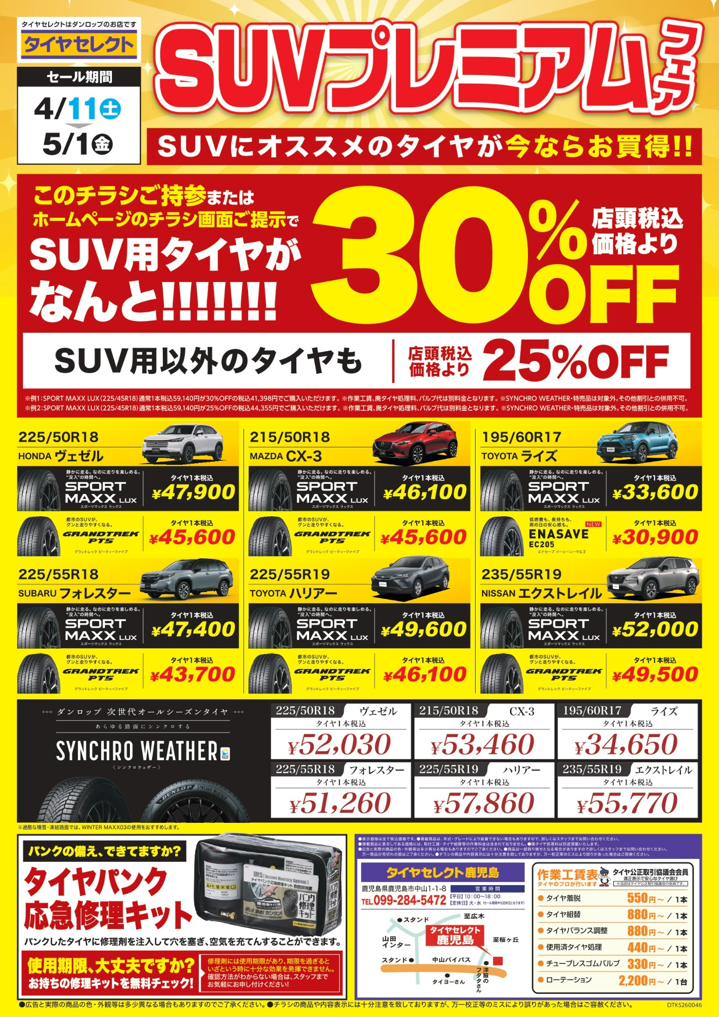 今回はお知らせは、SUVプレミアムフェアも残り約1週間となりました(#^.^#)