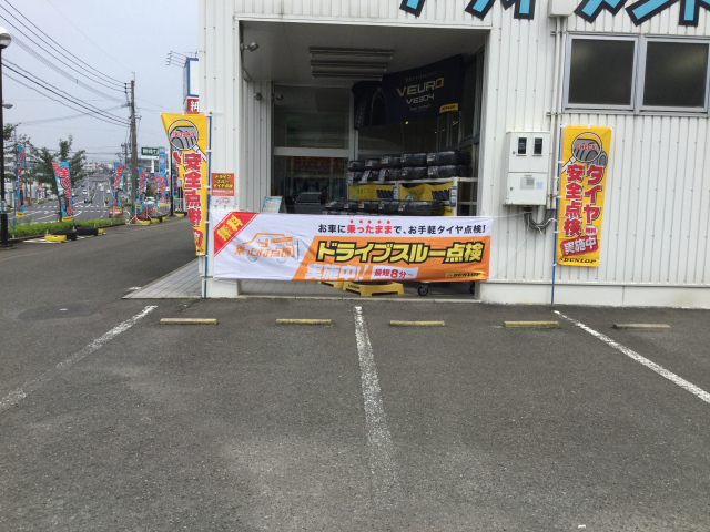 当店ではドライブスルー点検専用の駐車場を新たに設けました。ご来店をし、お車を止めて頂きますとスタッフがお伺いをし タイヤの空気圧等をチェックさせて頂きます。