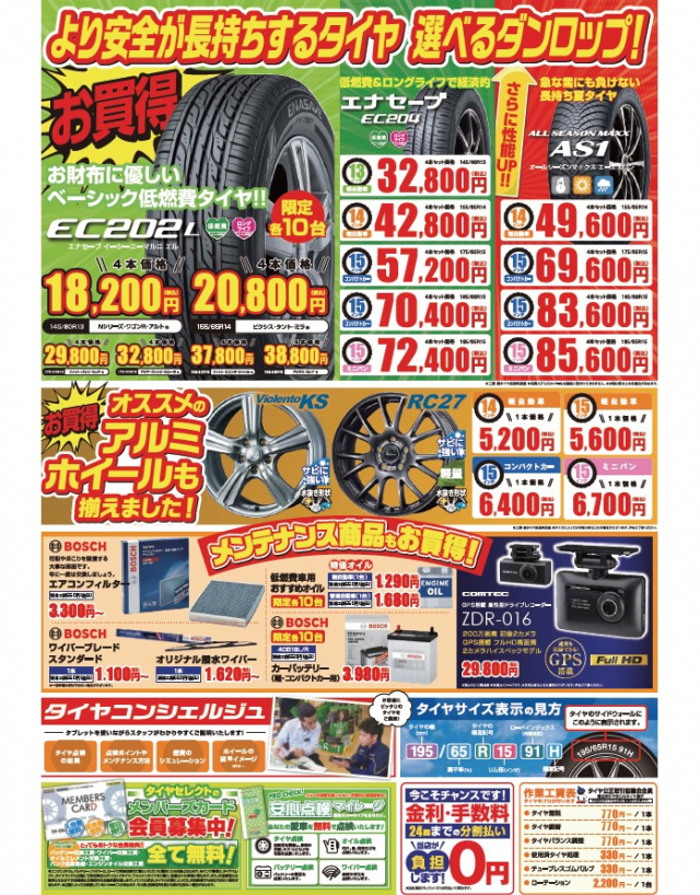 今回の目玉はタイヤ4本購入で 3種類の中から1種類お選びいただける豪華賞品をご準備しています!!!