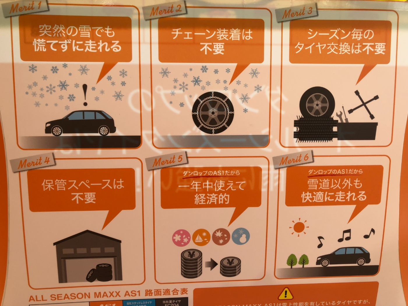 冬に向けておすすめ商品を紹介します。今までは雪が降ったらスタッドレスタイヤが必須でしたが、このオールシーズンタイヤがあれば突然の雪やチェーン装着をしなくても走れるんです。しかもシーズン通して1年中使用でき、お財布にも優しいタイヤとなっております。ただし、凍結している路面や山岳地帯では走行することができませんのでご注意ください。どんなタイヤか気になる方は、是非ご来店ください。