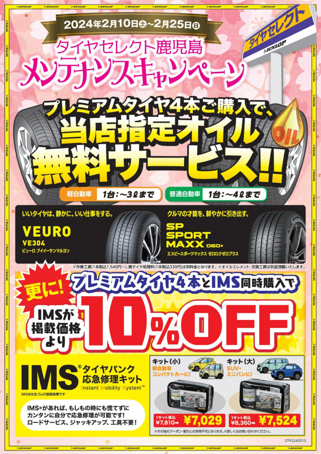 タイヤセレクト鹿児島限定のメンテナンスキャンペーンを実施中です!(^^)!
