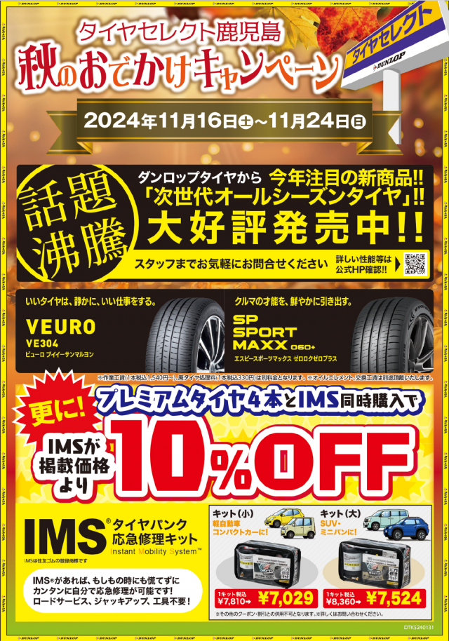 タイヤ4本と一緒にIMSご購入の方は、更に、10%OFFします。(^^)/