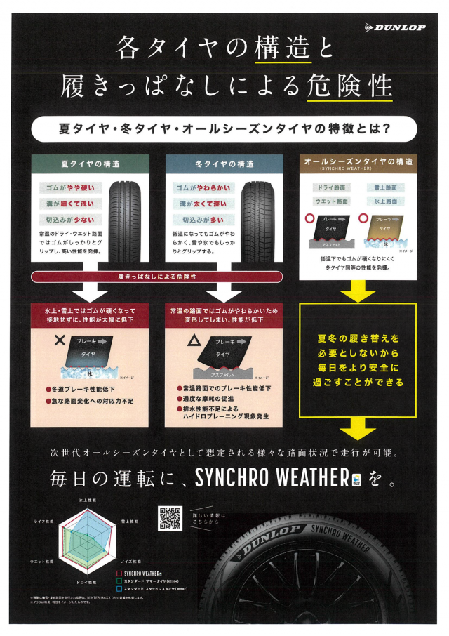 季節や天候を気にせず、1つのタイヤで不安なく快適にドライブできるタイヤとなっております。(*´з`)