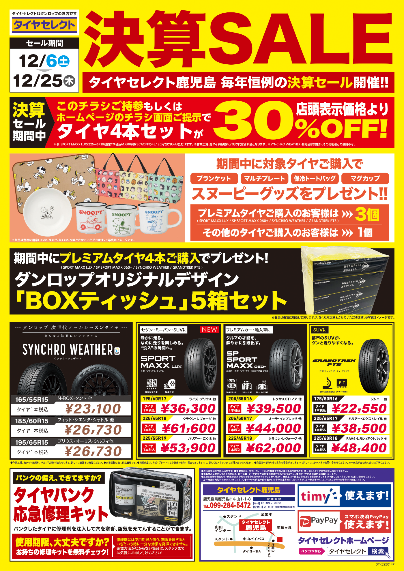 12月25日までの実施となっておりますので、タイヤ購入を検討されている方はぜひこの機会に!(^^)!