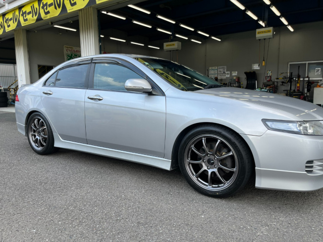 ショップ日記!(^^)! こんにちは(*´з`) 今回はアコードに装着したアルミーホイルとタイヤの紹介です(^_-)-☆ アルミホイールはエンケイのDF09 18X7.5J 5/114.3 +48です('ω') 色はダークシルバーと...